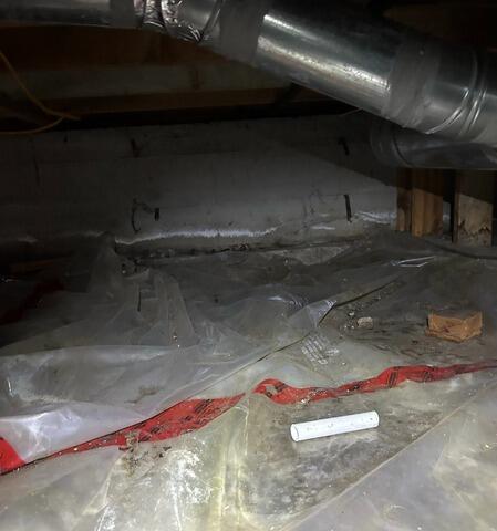 We transformed the crawl space into a clean, dry, and healthy area. First, we sealed off the entire space to keep out moisture from the ground and walls, making sure everything was properly fastened and airtight. To help with drainage and add durability, we laid down a protective layer beneath the liner. We also took care of rodent prevention by sealing up the overhangs with wire mesh and insulating the areas to keep the space warmer. The entire crawl space was thoroughly cleaned, old insulation was removed, rodent droppings were hepa vacuumed, and all surfaces were treated for mould and bacteria. We wiped down heating ducts, sewer lines, and got rid of spider webs to leave everything fresh. To keep the space dry long-term, we installed a dehumidifier that helps control humidity levels. Lastly, we added high-quality insulation to the walls and rim joists, sealing up all the seams to boost energy efficiency and ensure the space stays in great shape moving forward.