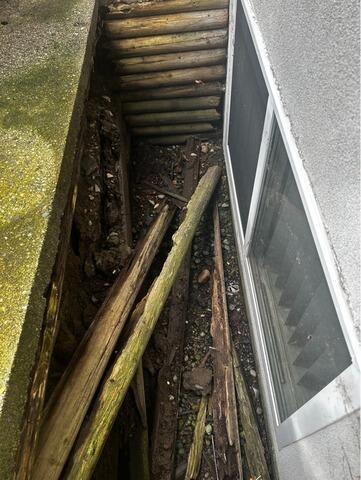 -Rotten window wells were removed and rebuilt with new treated lumber.