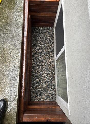 A new window well was built using treated lumber for strength and durability. A drainage mat was installed along the exterior to guide water away from the foundation, and the top edge was neatly finished with a mould strip. The area was then backfilled with the existing soil for a clean, secure finish.